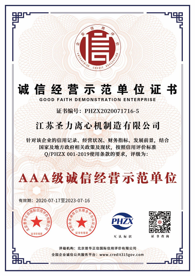 江蘇圣力離心機制造有限公司是國內分離機械行業(yè)中主要的離心機生產企業(yè),對離心機的研究、設計、制造有多年的歷史,擁有齊全的設備、完善的檢測手段。公司已通過IS09000國際質量體系認證、ISO14001環(huán)境管理體系認證、ISO45001:2018職業(yè)健康安全管理體系認證和CE認證,是江蘇省高新技術企業(yè),曾榮獲國家和地方多項榮譽稱號。